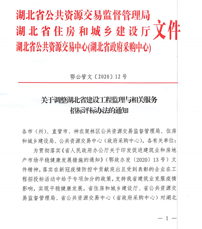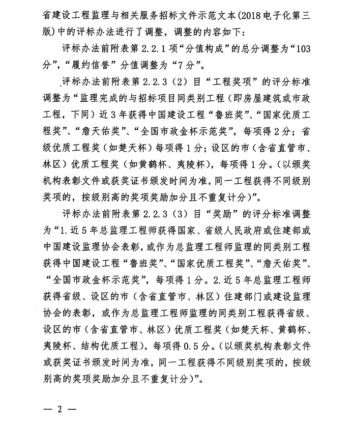 关于调整湖北省建设工程监理与相关服务招标评标办法的通知