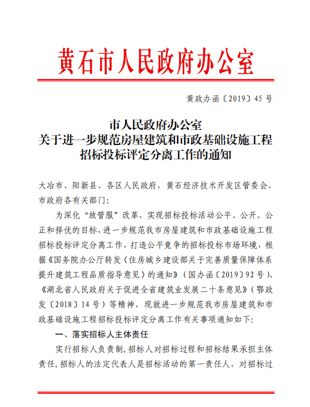 市人民政府办公室关于进一步规范房屋建筑和市政基础设施工程招标投标评定分离工作的通知