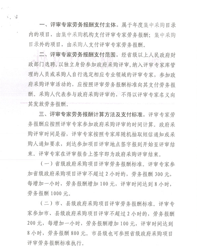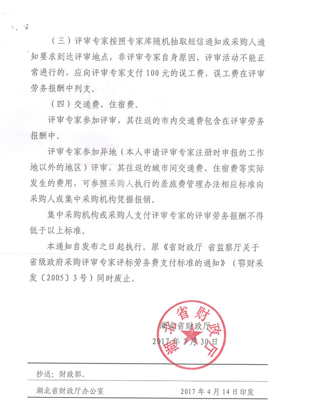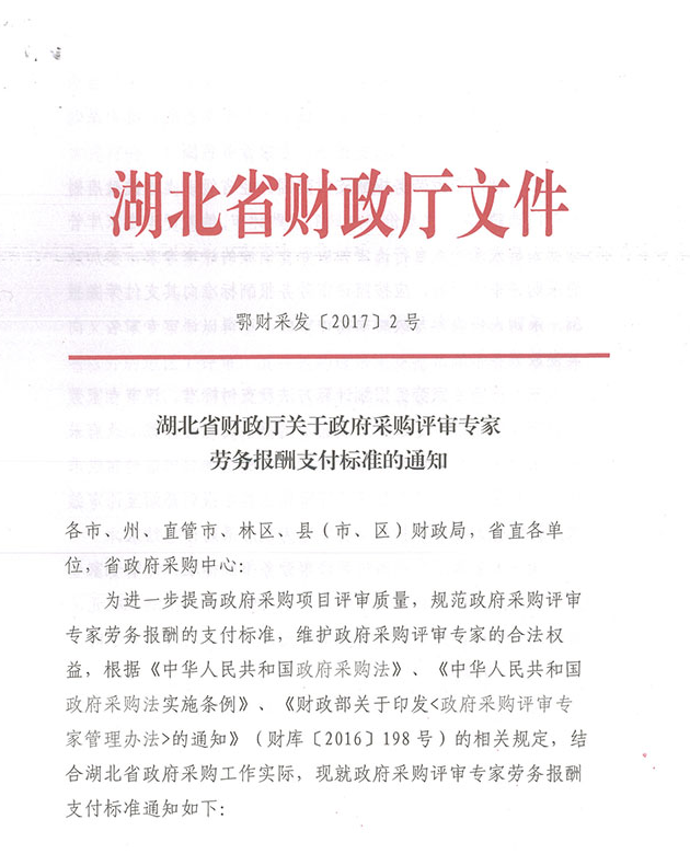 关于执行湖北省评标专家劳务费标准的通知